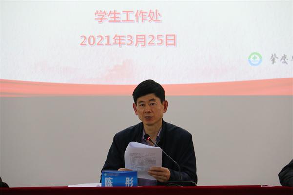 学生处处长覃瑜林,就开学以来学生管理工作情况做了通报和总结;要求大家根据党中央的统一部署和学校党委的工作安排,全面、深入开展党史学习教育活动,加强课程思政建设;提出系部副书记和辅导员要多去课室、多到宿舍、多进饭堂、多参活动,关心学生就业与心理健康;落实“三全育人”各个环节,为培养体、智、体、美、劳全面发展的社会主义建设者与接班人而努力;“清明节”假期,做好安全教育并做好学生去向登记,实施学生“一人一档”管理及做好留校学生管理服务;落实2021届中职毕业实习和大专毕业实习生回校的相关工作;做好大学生应征入伍的组织宣传动员工作,做到“精准动员、深入高效”,努力完成今年应征入伍目标;加强意识形态安全、政治安全教育与管理,确保校园安全稳定。