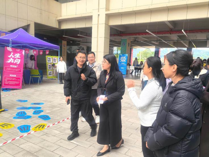 在华南农业大学珠江学院学工部负责人的陪同下,交流团队现场观摩了心理嘉年华系列活动,参与沉浸式体验,参观了校园、心理健康中心、教室、宿舍等区域,详细了解学校日常管理模式及经验。