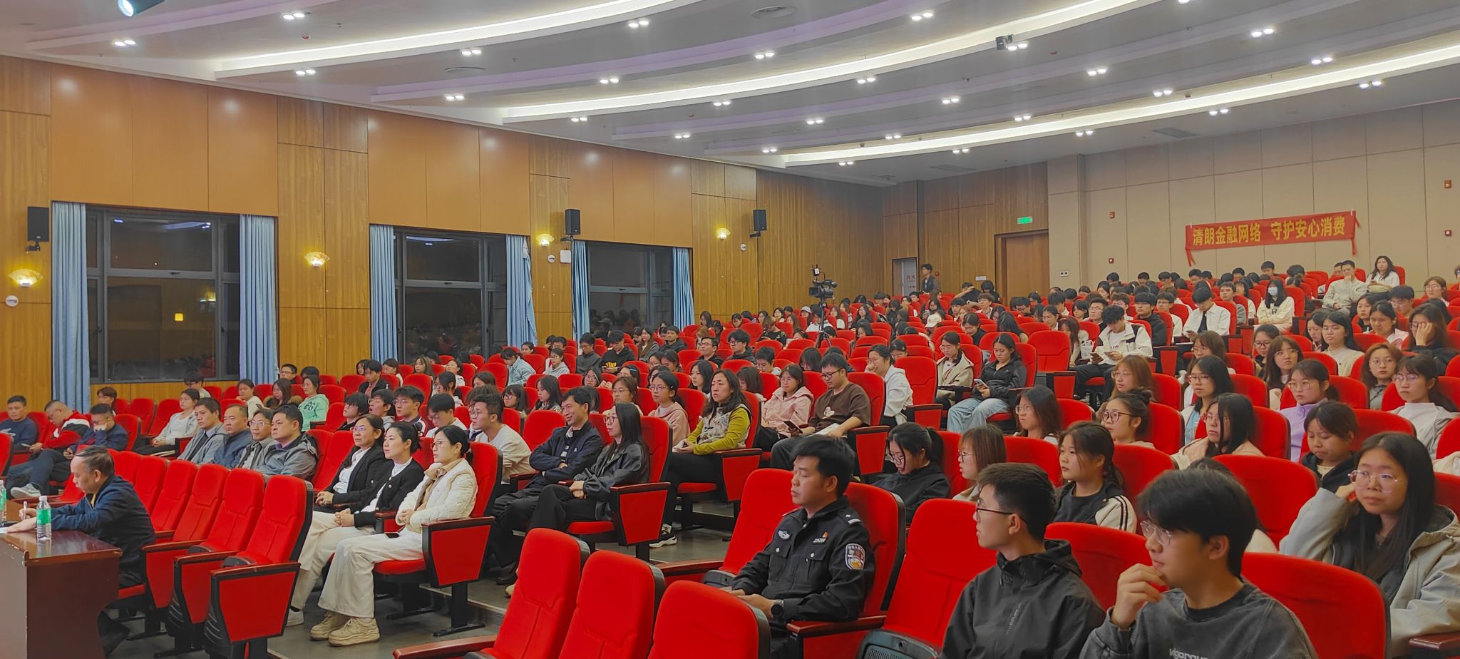 为筑牢校园安全防护网,切实提升全体师生安全防范能力,3月10日,我校保卫部联合学工部门,特邀属地公安部门反诈中心专家,开展防范电信网络诈骗暨青少年毒品预防宣传教育专题讲座。本次讲座在图书馆学术报告厅设置主会场,各班级学生在教室通过网络直播同步观看,实现全体师生全覆盖。