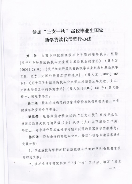 关于印发《参加“三支一扶”高校毕业生国家助学贷款代偿暂行办法》的通知